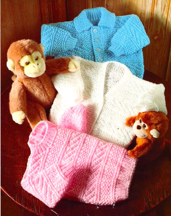 Baby cardigans & sweater 16-22″ 41-56 cms DK knitting pattern digital download.