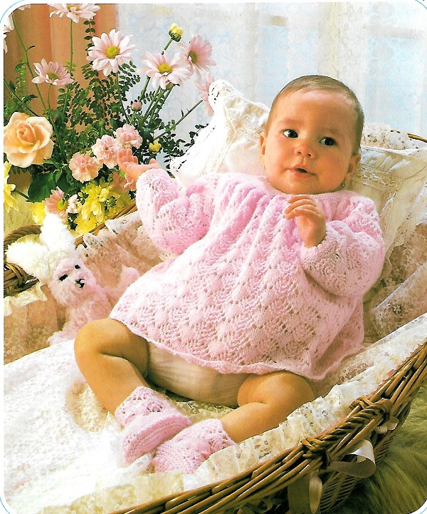 Baby set of angel top & bootees 18-19″ 45-48 cms 4 ply knitting pattern digital download