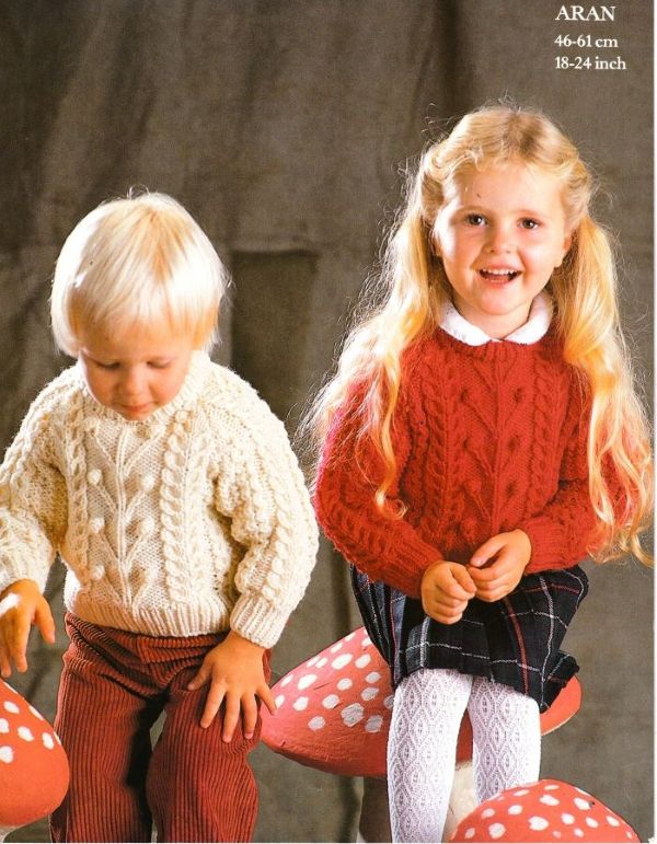Baby/child’s sweater 18-24″ 46-61 cms aran knitting pattern digital download.