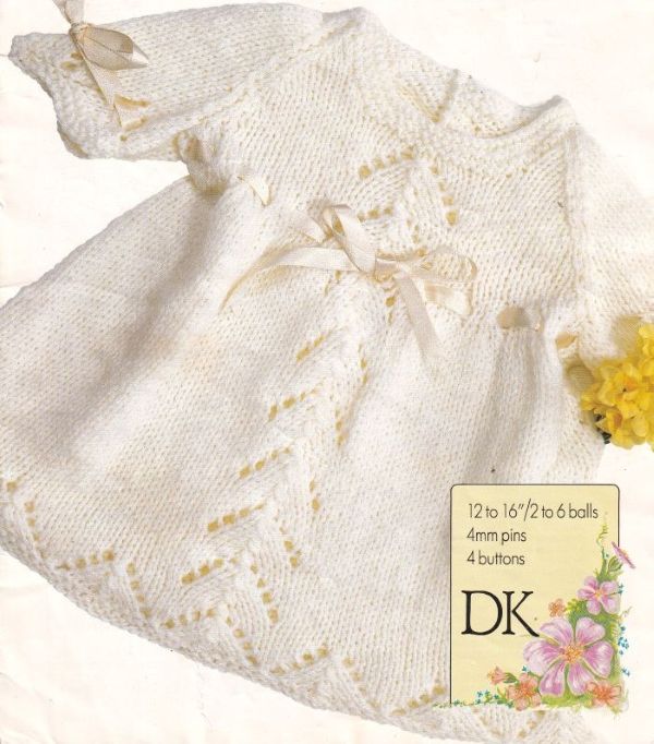 Baby dress 12-16″ 30-41 cms DK vintage knitting pattern digital download.