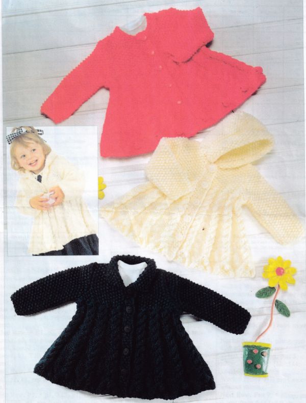 Baby swing coat 18-28″ 46-71 cms 0-6 years chunky knitting pattern digital download.