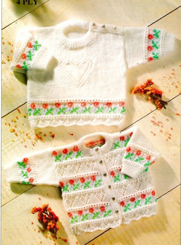 Baby/child’s cardigan & sweater 16-26″ 41-66 cms 4 ply knitting pattern digital download.