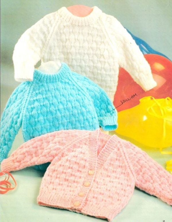 Baby sweaters & cardigan 16-22″ 40-55 cms DK knitting pattern digital download.