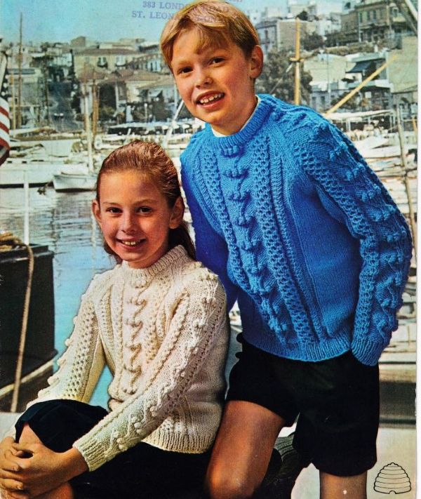 Children’s sweaters 26-30″ 6-11 years aran vintage knitting pattern digital download.