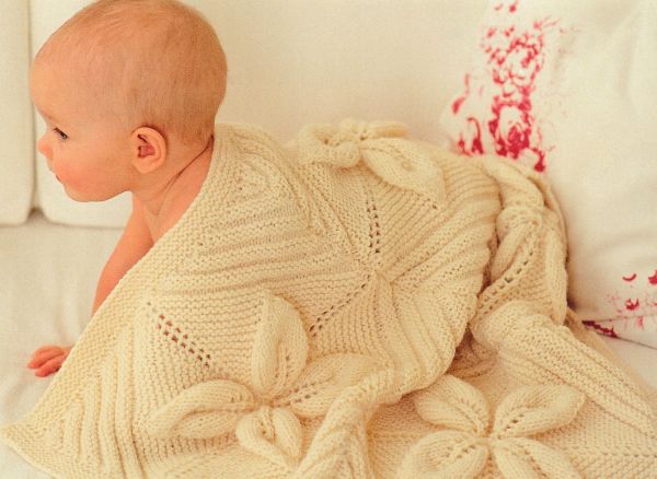 Baby’s traditional leaf design blanket/shawl DK or aran knitting pattern digital download.