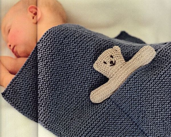Baby’s blanket with teddy bear toy 18 x 24″ 46 x 61 cms aran knitting pattern digital download.